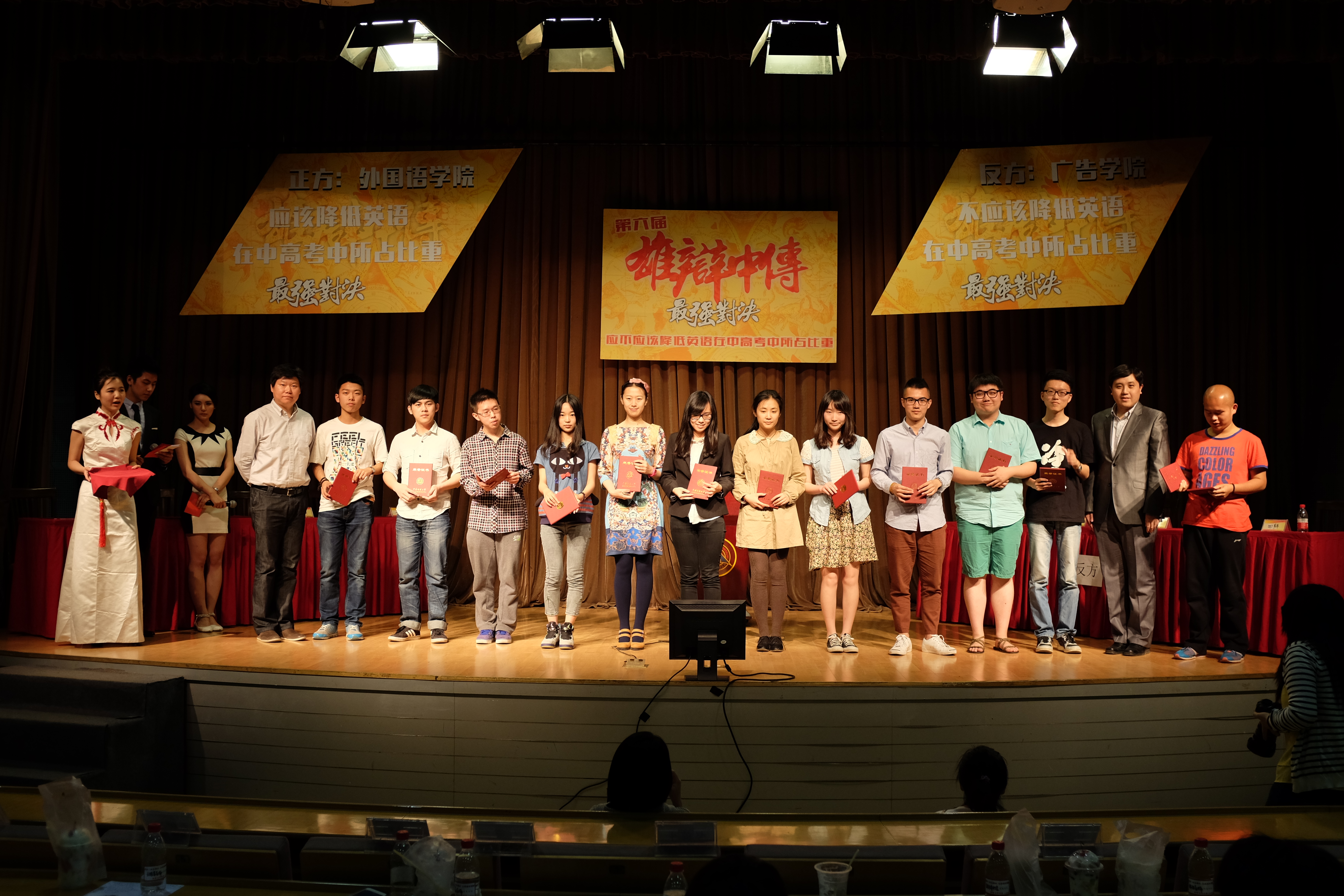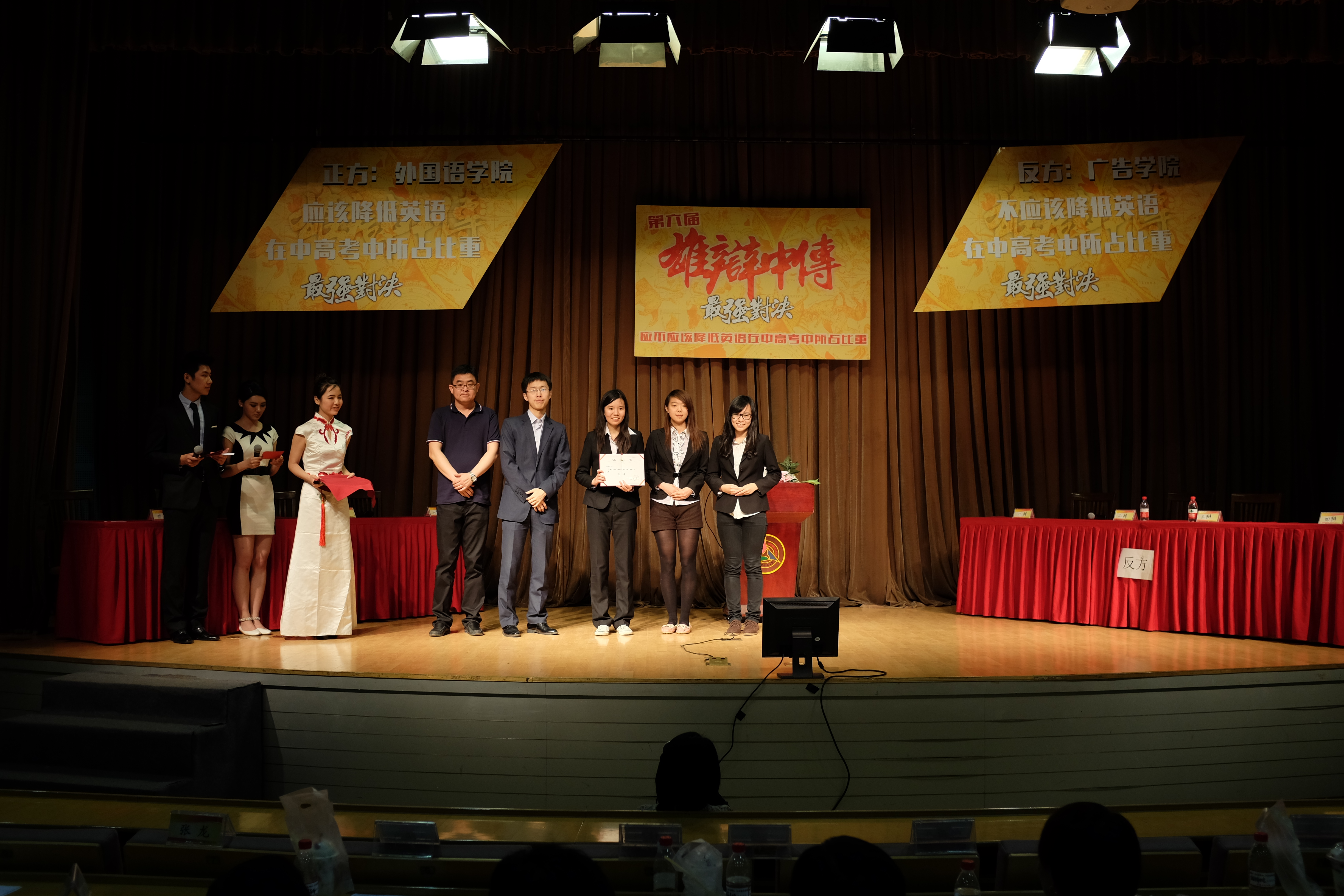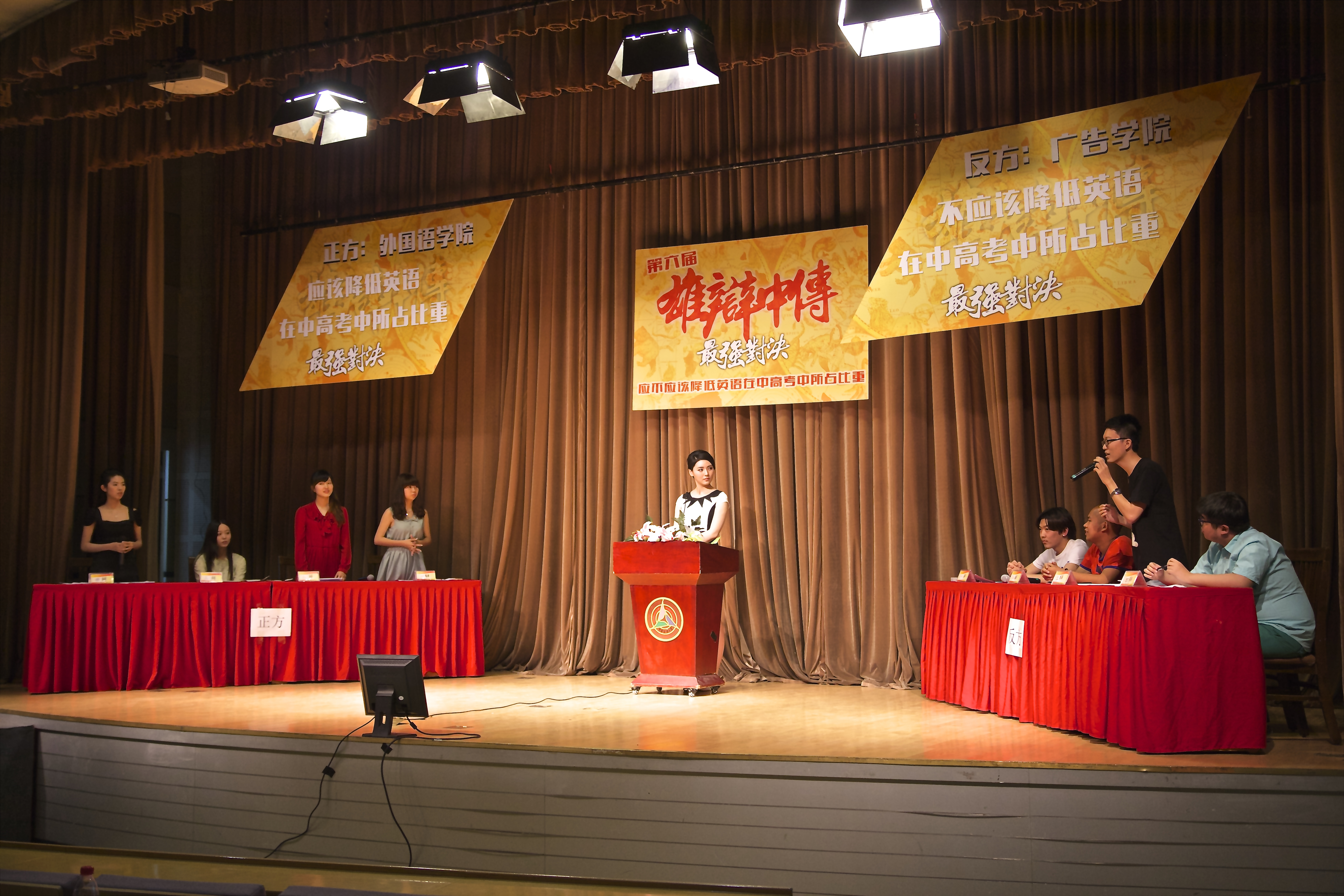 本次决赛围绕“应不应该降低英语在中高考中所占比重”这一辩题展开讨论,正方外国语学院辩论队对阵反方广告学院辩论队。经过激烈的角逐,最终正方外国语学院夺得冠军,反方二辩于慧琛获得“总决赛最佳辩手”称号。