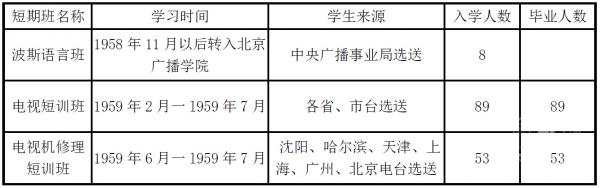 北京广播专科学校短期班学生情况一览表