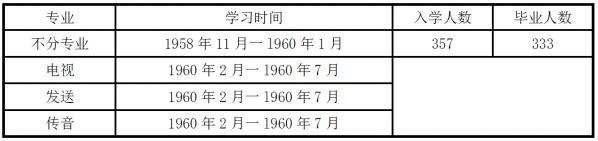 学校开学一年后,357 名学生分成发送技术、电视技术、传音技术三个专业,同时将二至五连建制改编为发送、电视、传音三个班。