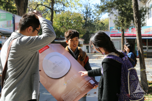 本次“光盘行动”具体宣传时间为2014年11月4日——11月5日,以“今天,你光了吗?”为口号并在一食堂和48教设有摆台地点,摆台现场粘贴着制作精美的海报,并且采用扫二维码就送水果糖的方式,吸引了大批来往的同学前来围观。本次活动的主办部门为传媒大学学生会生活权益部,“为了你的生活,我们默默服务;为了你的权益,我们全心全意。”关注微信公众号后,贴心的生活小贴士将会为你解决生活中遇到的问题。