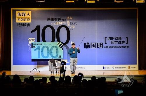 12月9日,新闻传播学部新闻学院主办的“传媒人系列讲座”第100场在综合实验楼400人报告厅举行。中国人民大学教授喻国明带来专题讲座《互联网逻辑与媒体转型》。