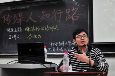 1、2014年11月26日,大师公开课第一讲由赵玉明教授带来的《新闻学教育史》讲座。
