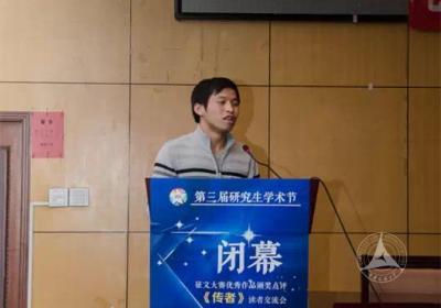 校研究生会主席吕强回顾了学术节开幕27天以来开展的各项活动,包括大师公开课、“传媒人·知行路”系列讲座、博士后论坛、征文大赛等,这些活动促进了学术的多维交流,思想的深度碰撞。文法学部、MBA联合会及外国语学院的学院研会也开展了许多活动,除学术讲座、沙龙外,又有学院特色的活动,如外国语学院的读书会,MBA学院开展的公益活动等。