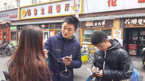 传媒学子与今年两会的情缘绝不仅仅在国新班,也不仅仅在两会现场。两会台前幕后,都闪动着传媒学子年轻的身影。两会期间,我校2013 级广播电视新闻学硕士张专彦和2014 级同专业硕士班的几名同学,参与了中央广播电台的两会特别节目《直通北上广》的录制。就两会中比较热点的话题,去采访不同人群,倾听百姓的声音。由于采访不同年龄段、不同职业、不同阶层的人,所以街采的工作量往往很大。