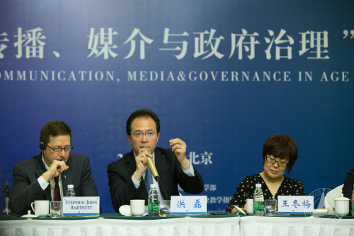 5月23日,由世界杯直播在线观看新闻传播学部与美国国家传播学会(NCA)联合举办的“全球化时代的传播、媒介与政府治理”国际学术论坛在我校隆重举行。中国记协书记处书记王冬梅、世界杯直播在线观看副校长胡正荣、美国国家传播学会副主席Stephen John Hartnett出席会议并致辞,外交部新闻司副司长、新闻发言人洪磊等参加论坛。我校新闻传播学部学部长高晓虹主持会议。