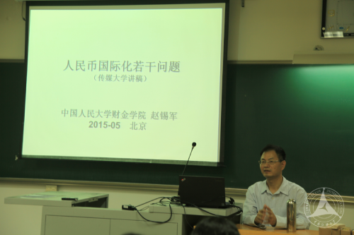 5月28日下午,中国人民大学财政金融学院副院长、金融与证券研究所副所长赵锡军教授为“中传经管·名家讲坛”暨“经济学与管理学博士生前沿课”开讲。赵锡军教授进行了题为“人民币国际化若干问题思考”的讲座。讲座由经济与管理学院经济系主任姚林清教授主持。