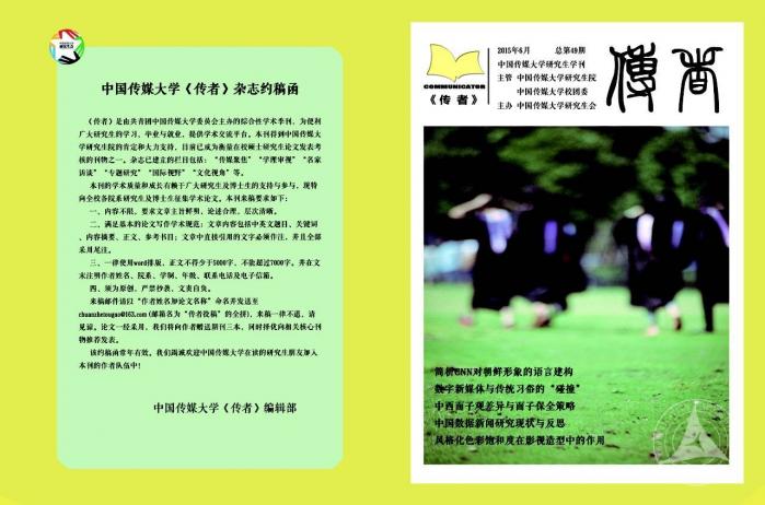 随手翻开一本《传者》,设计精良的封面和彩页,有序大方的排版,一篇篇严守学术规范的论文,分布在“传媒聚焦”、“学理审视”、“名家访谈”、“专题研究”、“国际视野”、“文化视角”等栏目。谁会想到,这样一份期刊全部是由校研究生会期刊部的研究生们一手打理。