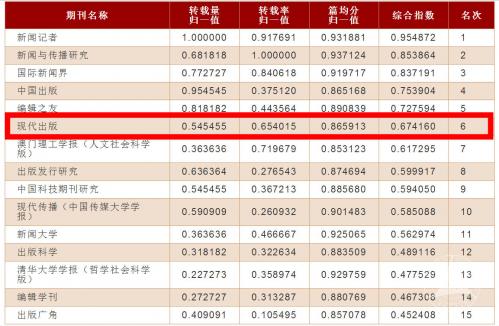 此外,《现代出版》还位列新闻传播学专业期刊社会性指数第6名。