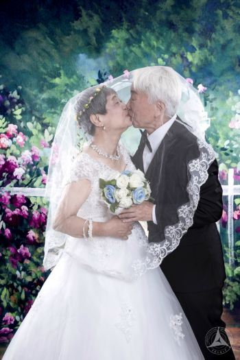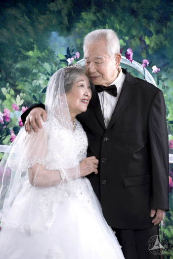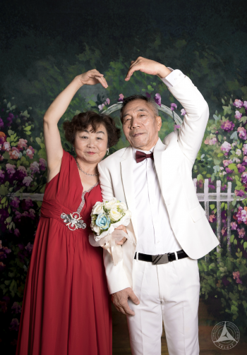 任爷爷和梁奶奶是同学们拍摄的第一对老人,奶奶亲和爱笑,爷爷严肃不太善言辞。后来在采访过程中梁奶奶告诉同学们:“爷爷不是不爱说话,2002年的时候因为得了脑出血压迫了神经说话有些受阻,腿脚也不是很利索。但不管如何十几年我还是一直坚持照顾他,因为就算儿女再孝顺,能陪在我身边的人还得是他。我知道他有些事都记在心里,不表达出来,他理解我,也知道我这么多年一直不容易,所以我们俩还是很幸福的。”奶奶段话虽然听上去很轻松,但是她这些年来付出的辛苦也是难也想象的。老两口喜欢旅行,这些年来他们一起去过韩国、泰国、厦门鼓浪屿、云南大理和丽江等等许多地方。这次的婚纱照拍摄正好赶上两个人结婚40周年,奶奶说不知道还有几个十年,年轻的时候根本没有这样的机会,趁着还能动来照一个,以后也不遗憾。