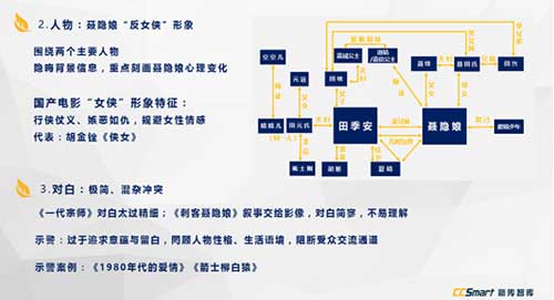 报告还以《刺客聂隐娘》为案例,简要分析了其剧作、视听、营销宣发方面的特点。通过梳理各大网络平台数据,发现影片的风格过于突出,网友评论两极分化严重,双方在影片的艺术品质上对立严重,而对影片中明星主演的讨论度则较低。其中正面评价主要针对影片的唯美画面、导演艺术风格延续、中国意境完美再现的赞扬;负面评价则主要认为影片不具有娱乐观赏性,如剧情不吸引人、台词文言夹杂白话、影片节奏较慢、演员表演较生硬等。