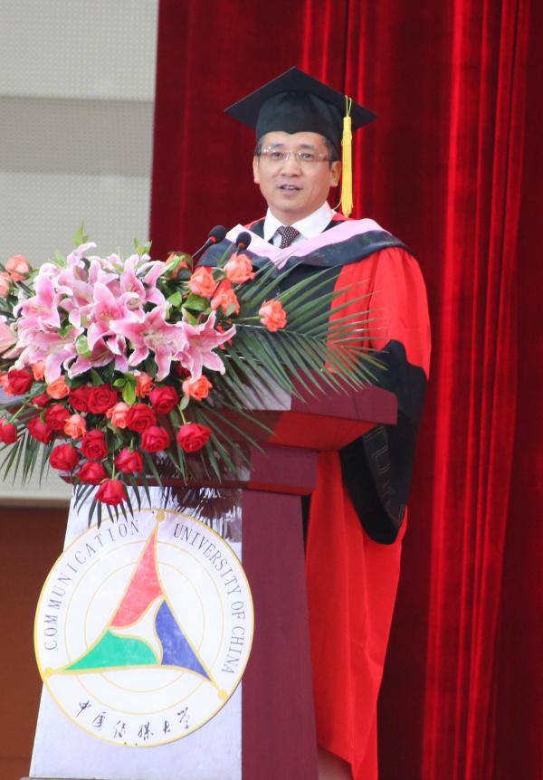 刚才,胡正荣校长热情洋溢、语重心长的致辞,饱含真挚、深厚的祝福,充满了积极向上的正能量,也带给我们巨大的鼓舞和鼓励。尤其是,对毕业生同学来说,今天学校举办的简洁、隆重的“典礼”意味着对大家几年求学生活的肯定和褒奖,也意味着同学们人生旅程的新开端!祝贺同学们、祝福同学们!