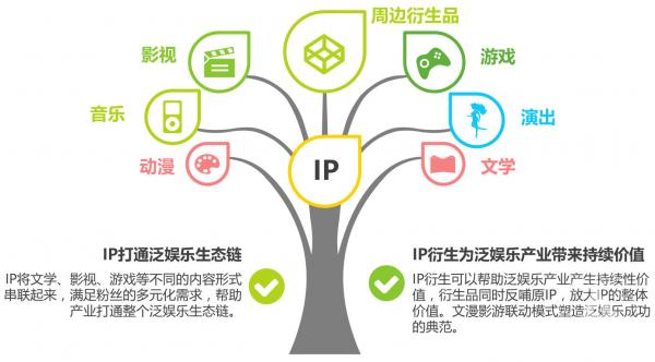 “泛娱乐”的概念是在2012年3月21日的“UP2012腾讯游戏年度发布会”上,由腾讯集团副总裁程武正式宣布推出。当时定义为以IP(Intellectual Property)授权为轴心、以游戏运营和网络平台为基础的跨领域、多平台的商业拓展模式。2014年4月文化部发布《2013中国网络游戏市场年度报告》,提到了“泛娱乐”的概念。工信部最新发布的《2018年泛娱乐产业白皮书》显示,以IP为核心,游戏、动漫、文学、影视、电竞和视频等多元数字内容共融共生,发展快速。在过去的一年里,泛娱乐产业共创造了超过5000亿元的核心产值。