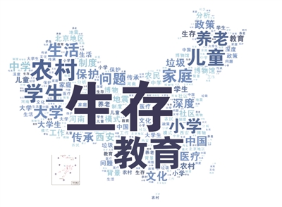 “子牛杯”选题涉及领域广泛。对历届作品标题进行词频分析,发现教育类选题数量位居第二,“小学”“大学”“学生”等关键词高频率出现。(图中词语字号越大代表出现频率越高)