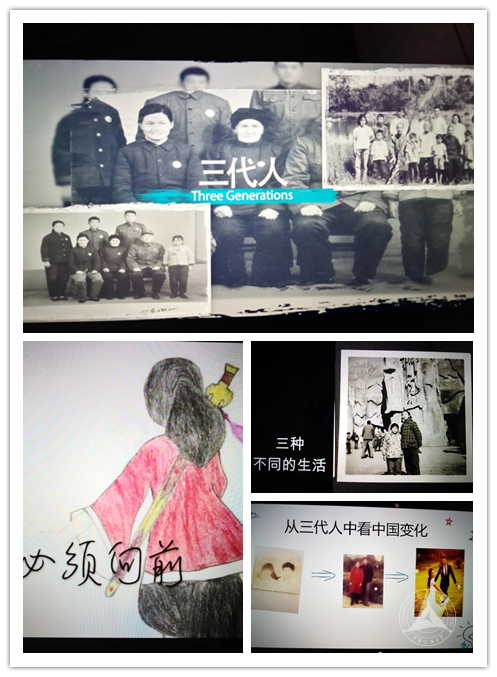 阴军莉一直秉持“拓宽学生宽度与厚度”的教学理念,注重“把人生拉长”,坚持以终为始的方式,引导和启发学生。为实现课堂立体化与多维参与,在2018级学生的课堂上,她布置了两个任务:一个通过采访父母、祖父母,与自己的生活相对比,拍摄“三代人”的视频,以体现生活、观念的变化;另一个是拍摄“家乡”的视频,认识并审视家乡的美。她说“我相信学生在做的过程中一定会有所收获,有所感悟,不仅能够增进学生与家长的沟通,增强学生对家、对家乡的归属感与认同感,更能引领学生感受到国家由站起来、富起来到强起来的变化历程”。在成果展示环节,确实印证了她之前的设想,有同学感言说“这份任务让我有了意想不到的收获,我才发现自己竟然完全不了解父母,不知道父母曾经的艰辛。每次看到对父母的访谈内容,我都会忍不住流泪”。也有同学说“家乡本应是我最熟悉的地方,我在那里走过了18年,可是当完成这个作业的时候,我才发现我并没有走进它”。
