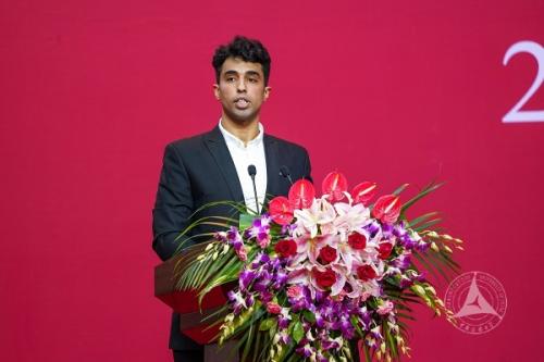 在校生代表,电视学院2018级国际新闻硕士生齐虹翕为2019级新生送上了自己的经验与感悟:其一,勤奋学习,不断探索;其二,热心公益,积极实践;其三,砥砺奋斗,充实自我。