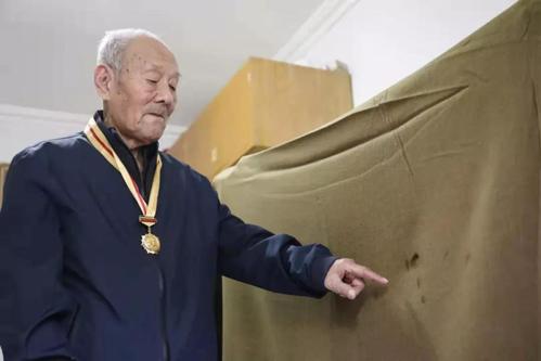 解放后,战友赠予秦玉萱一张被子弹打穿的毛毯。从此,这条旧毛毯便成为秦玉萱的贴身之物,无论走到哪里,他都会带着。经年累月,这条毛毯已经越来越破旧,但它仍被整整齐齐地铺在老人家的沙发上。对于秦玉萱来说,这条毛毯是他与战友革命友谊的见证,也是那段炮火连天的岁月留下来的温情记忆。