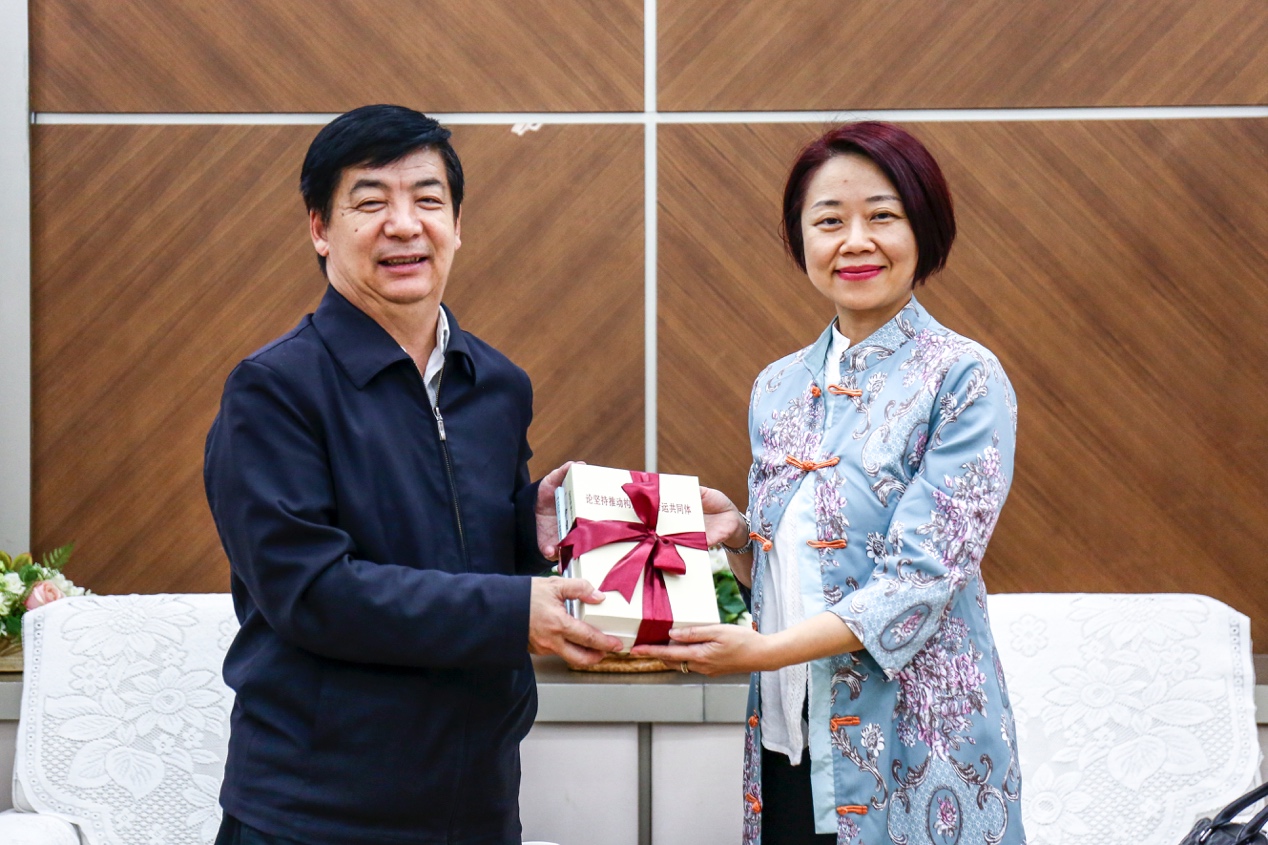 姜绪范副书记代表学校向外交部赠送“我是爱国好青年”主题手环