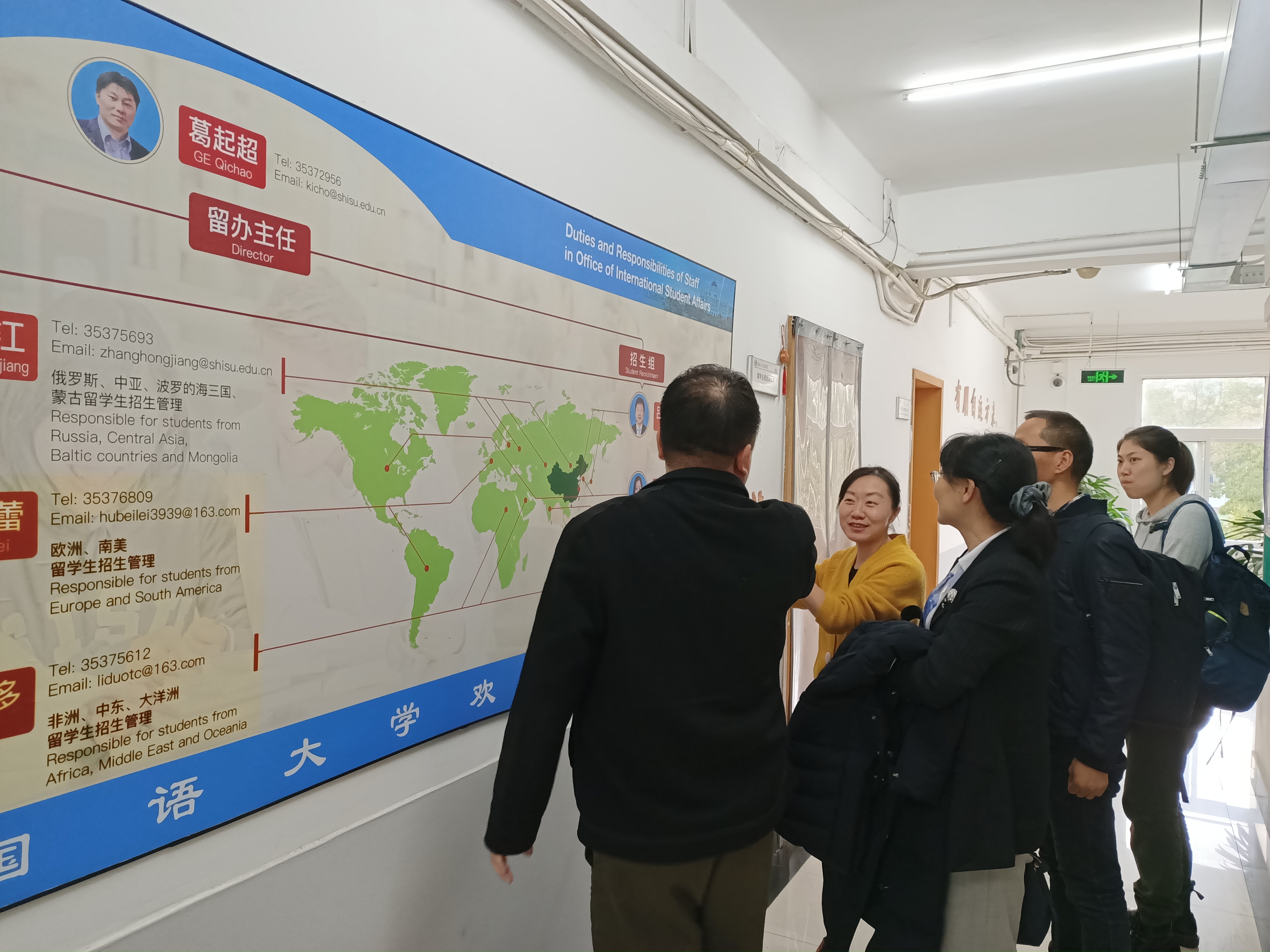 舒笑梅处长一行四人赴上海外国语大学国际交流学院调研,该院葛起超主任、吕林副主任和陈灼芬副主任等人全面介绍了该院国际交流信息化建设,国际学生招生、培养、趋同化管理和孔子学院建设等相关情况。舒笑梅处长表示,上海外国语大学在国际化办学方面有很多经验值得我们学习,此次调研将对加强我校“双一流”学科国际化建设起到重要作用。