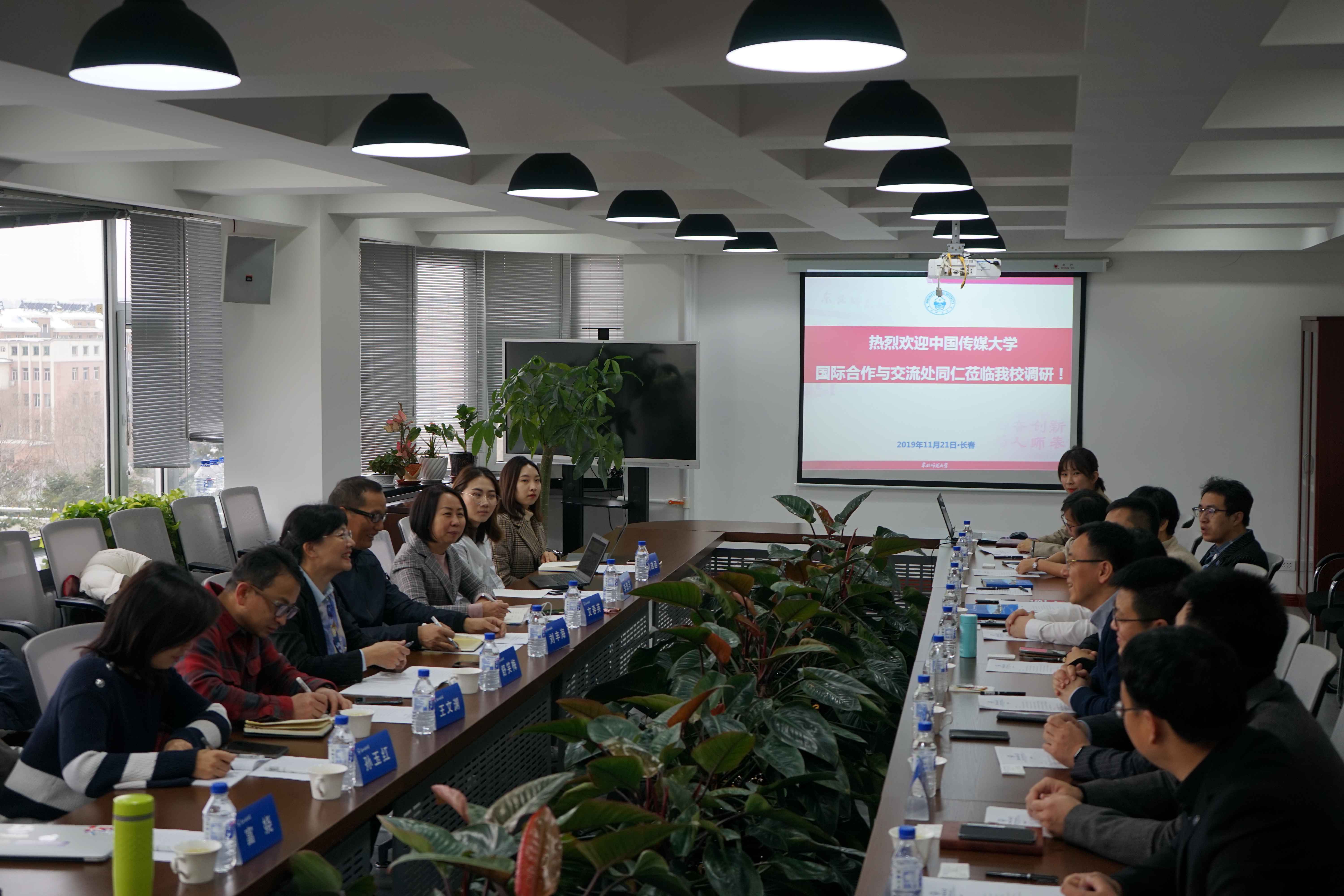 11月20日下午,我校国际交流与合作处一行与吉林大学国际处进行座谈,听取了吉林大学在国际化发展战略、二级单位国际化考评体系、外事审批与制度建设等方面的经验。吉林大学分管外事的赵宏伟副校长、国际处处长张广翠和国际教育学院院长李梅花对我校代表团一行的到来表示热烈欢迎,并分别介绍了吉林大学国际合作与交流处的发展历程和国际教育学院的总体情况。