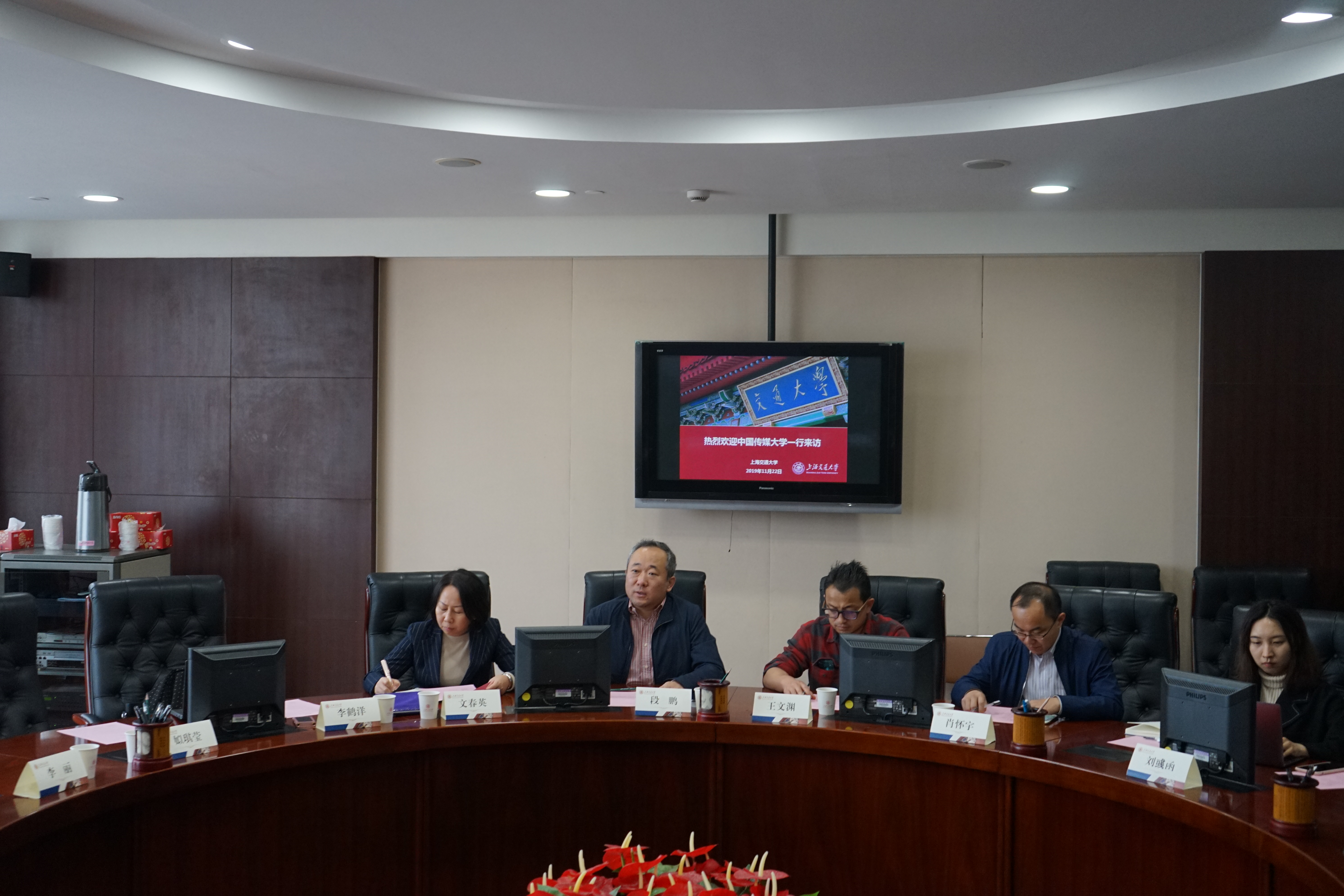 11月22日下午,代表团分别访问了上海交通大学与上海外国语大学,上海交通大学副校长张安胜、国际合作与交流处及相关部门热情接见了段鹏副校长一行。张安胜副校长向我校代表团介绍了上海交通大学闵行校区的建设与发展情况。国际合作与交流处处长罗鹏介绍了上海交通大学的国际化战略、国际化工作实践以及国际合作与交流处的基本设置等,国际合作与交流处各下属部门的相关负责人针对各自部门职责向我校代表团展示了该校为国际化发展开展的工作及取得的成果。