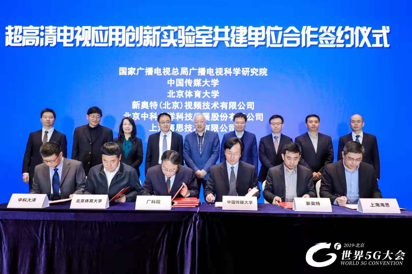 (通讯员 潘达)2019年11月22日,“世界5G大会—5G+超高清视频高峰论坛”在北京举行,国家广播电视总局科技司司长许家奇到会并发表重要讲话,会议由国家广播电视总局广播电视科学研究院院长邹峰主持。世界杯直播在线观看作为共建单位应邀参加超高清电视应用创新实验室合作签约仪式,李新军副校长出席签约仪式,信息与通信工程学院刘剑波院长代表学校与国家广播电视总局广播电视科学研究院签署了实验室的共建协议。