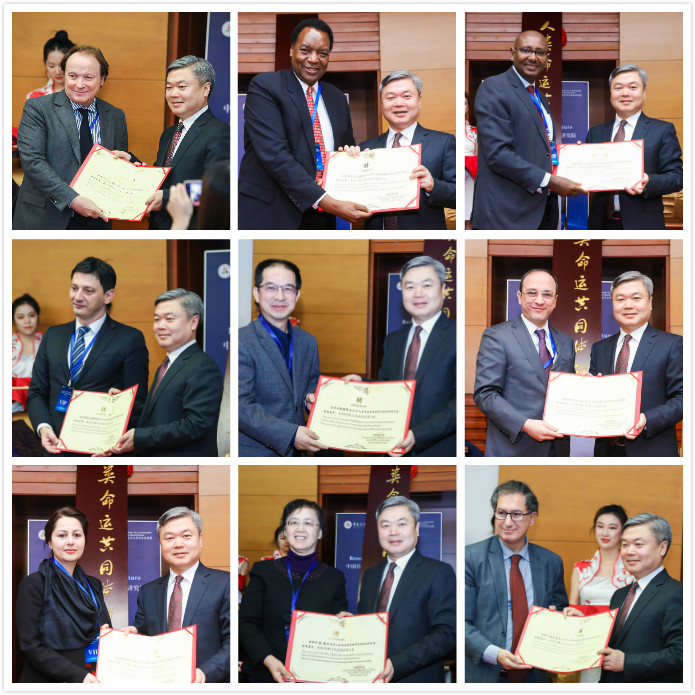嘉宾致辞环节后,廖祥忠校长为人类命运共同体研究院十六名特约顾问和十一名特约研究员颁发了聘书。