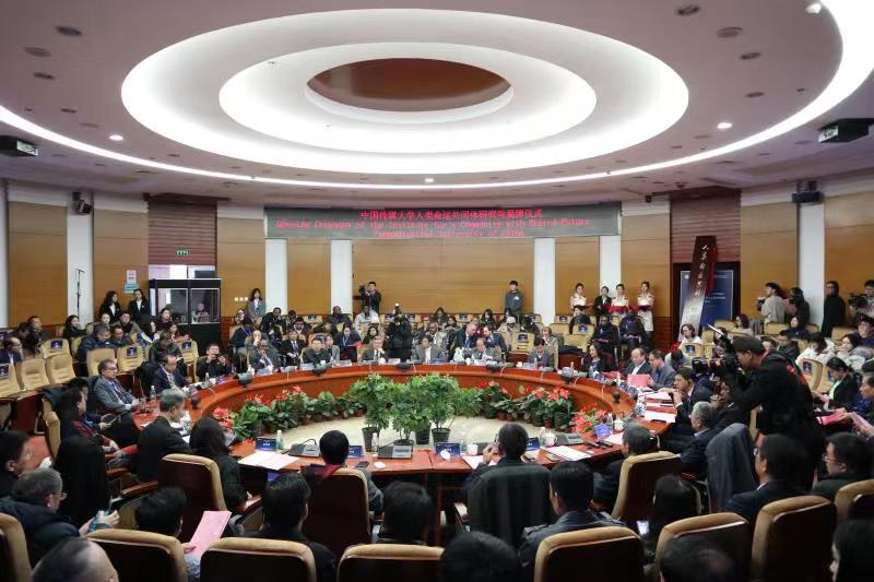 (通讯员 姬德强 摄影 葛艳玲)2019年11月29日,世界杯直播在线观看人类命运共同体研究院揭牌仪式在图书馆圆形报告厅举行。人类命运共同体理论是习近平新时代中国特色社会主义思想的重要组成部分。为了使这一理论在国际社会得到更为广泛的传播和认同,世界杯直播在线观看发挥自身学科优势,设立人类命运共同体研究院,创建人类命运共同体理论在系统化研究和国际传播方面的国际学术平台。来自联合国教科文组织、中国、英国、德国、巴西、黑山共和国、坦桑尼亚、埃塞俄比亚、巴基斯坦等国际组织和国家的外交使节、智库和企业领导人、大学校长等五十余位嘉宾及学校党委领导班子、学校机关直属各部门、各学院领导、留学生代表参加了成立仪式。