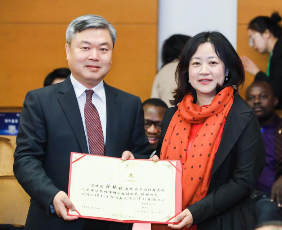 廖祥忠校长为人类命运共同体研究院副院长张艳秋教授颁发聘书