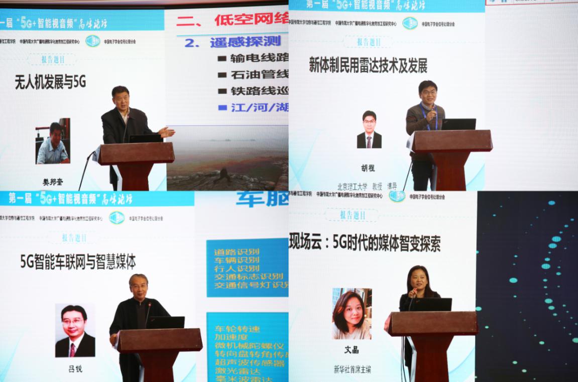 上午的论坛由信息与通信工程学院党委书记李增瑞主持。中国工程院樊邦奎院士作关于“无人机发展与5G”的专题报告,重点介绍了无人机低空网络的构建以及低空网络对无人机产业的影响,强调了未来无人机发展的本质是网络环境下数据驱动的空中移动智能体;北京理工大学胡程教授作关于“新体制民用雷达技术及发展”的专题报告,详细介绍了民用雷达应用的三个主要大方向:雷达成像,雷达目标探测,航天遥感技术;新华社技术局吕锐教授作关于“5G车联网与智能媒体关键技术”的专题报告,详细介绍了汽车的发展方向、5G车联网、关键技术和应用场景,并对车联网和智慧媒体研究方向作出进一步的展望;新华社文晶主编作关于“新华社现场云:5G时代的媒体智变探索”的专题报告,对AI合成主编的技术特征以及AI与视频技术结合运用前景进行了详细介绍。