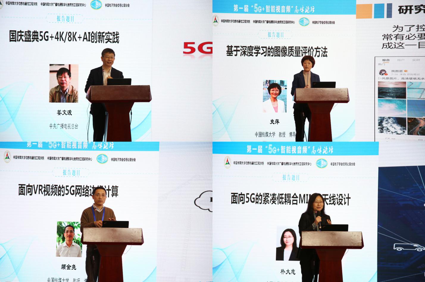 下午的论坛由信息与通信工程学院副院长金立标主持。史萍教授作关于“基于深度学习的图像质量评价”的专题汇报,详细介绍了图像质量评价的研究背景和意义,以及团队目前取得的研究成果;颜金尧教授作关于“面向VR视频的5G网络边缘计算研究”的专题报告,从5G网络边缘计算、5G网络边缘缓存、5G移动网络和4K/8K视频净切换系统四个方面作了详细报告;朴大志教授就“5G紧凑型低耦合MIMO天线设计”作专题报告,详细介绍了关于MIMO天线设计的研究进展以及研究成果;中央广播电视总台编务会成员姜文波教授就“国庆盛典5G+4K/8K+AI创新实践”作专题报告,介绍了国庆盛典直播期间使用的最新技术与创新实践,指出5G+4K/8K+AI将引领电视媒体走向新的辉煌。