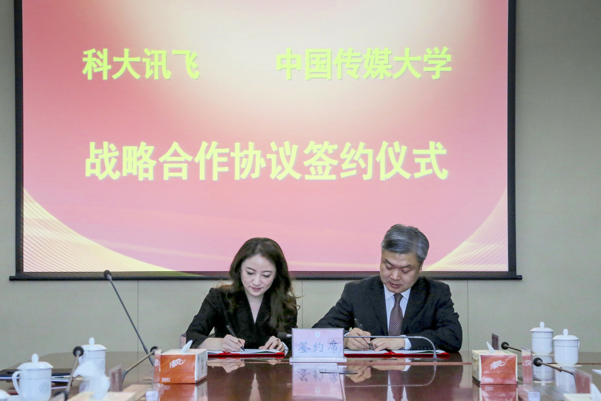 仪式上,廖祥忠校长与杜兰高级副总裁分别代表双方签署战略合作协议。据了解,此次合作双方将在舆情发布引导、智慧媒体与新闻导语分发、语音智能翻译、新闻发言人培训、虚拟播音员打造、脑科学与人工智能领域合作、商业广告模式创新、新闻媒体“采编播审存”系统设计等方面开展广泛而深入的合作。