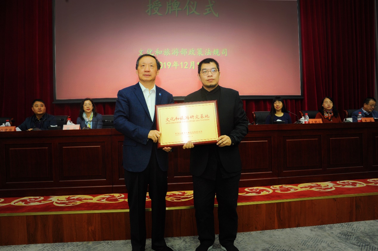 (通讯员 刘京晶 摄影 文化和旅游管理干部学院)2019年12月10日上午,文化和旅游研究基地授牌仪式在中央文化和旅游管理干部学院举行。文化和旅游部党组副书记、副部长李金早到会讲话并为研究基地授牌,我校等全国25个研究基地获颁基地牌匾,仪式由文化和旅游部政策法规司司长张永新主持。此次获批“文化和旅游研究基地”,为我校又增添一个省部级研究基地,对我校“双一流”学科建设、北京市“文化产业”高精尖学科建设具有重要意义和积极影响。