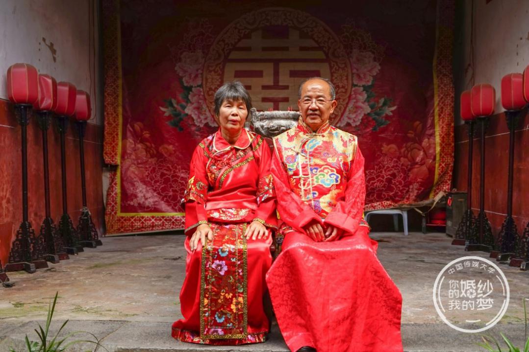 发现历史,记录美好,是我们此行的初衷。林爷爷家被精心设计成了婚庆馆的模样,门外是花轿,门内是喜庆的拜堂布景。虽然年事已高,但他们活力犹在,一次又一次地换场地、“摆POSE”,相互搀扶,笑容灿烂,我们眼前呈现出一幅关于爱情的美好画卷。“咔,咔,咔……”快门响处,“夕阳无限好”的风景被逐张记录。林爷爷家儿孙满堂,含饴弄孙、绕膝而坐的天伦之乐又为这些图景增加了几分灵动。奶奶感慨地说:“当年的结婚仪式非常简洁,没想到还有机会穿上礼服,拍摄珍贵的婚纱照。”