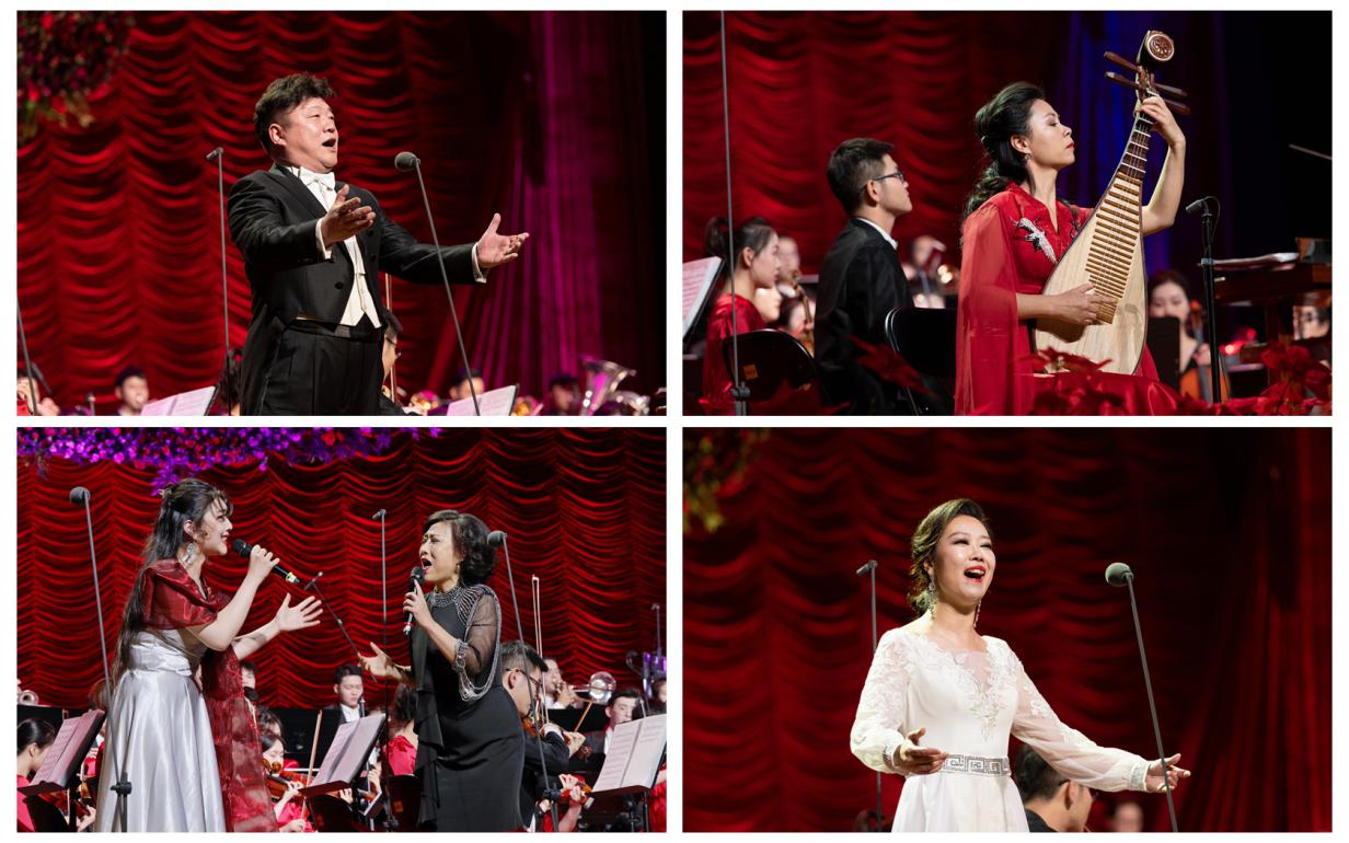 著名男高音歌唱家金郑建与交响乐团合作演绎了歌剧《微笑王国》中的咏叹调《你是我的一切》;琵琶演奏家罗慧芳与交响乐团的同学们共同演绎了富有西域特色的《楼兰姑娘》;歌唱家耿丽萍与我校音乐与录音艺术学院声乐表演专业的王艺格合作演唱了音乐剧《猫》中的著名唱段《回忆》;音乐与录音艺术学院青年教师赵珂演唱了《中国梦》,悠扬的旋律中饱含着对祖国的热爱。美妙动听的旋律与演唱嘉宾们优美动情的歌声赢得了现场观众的阵阵掌声。