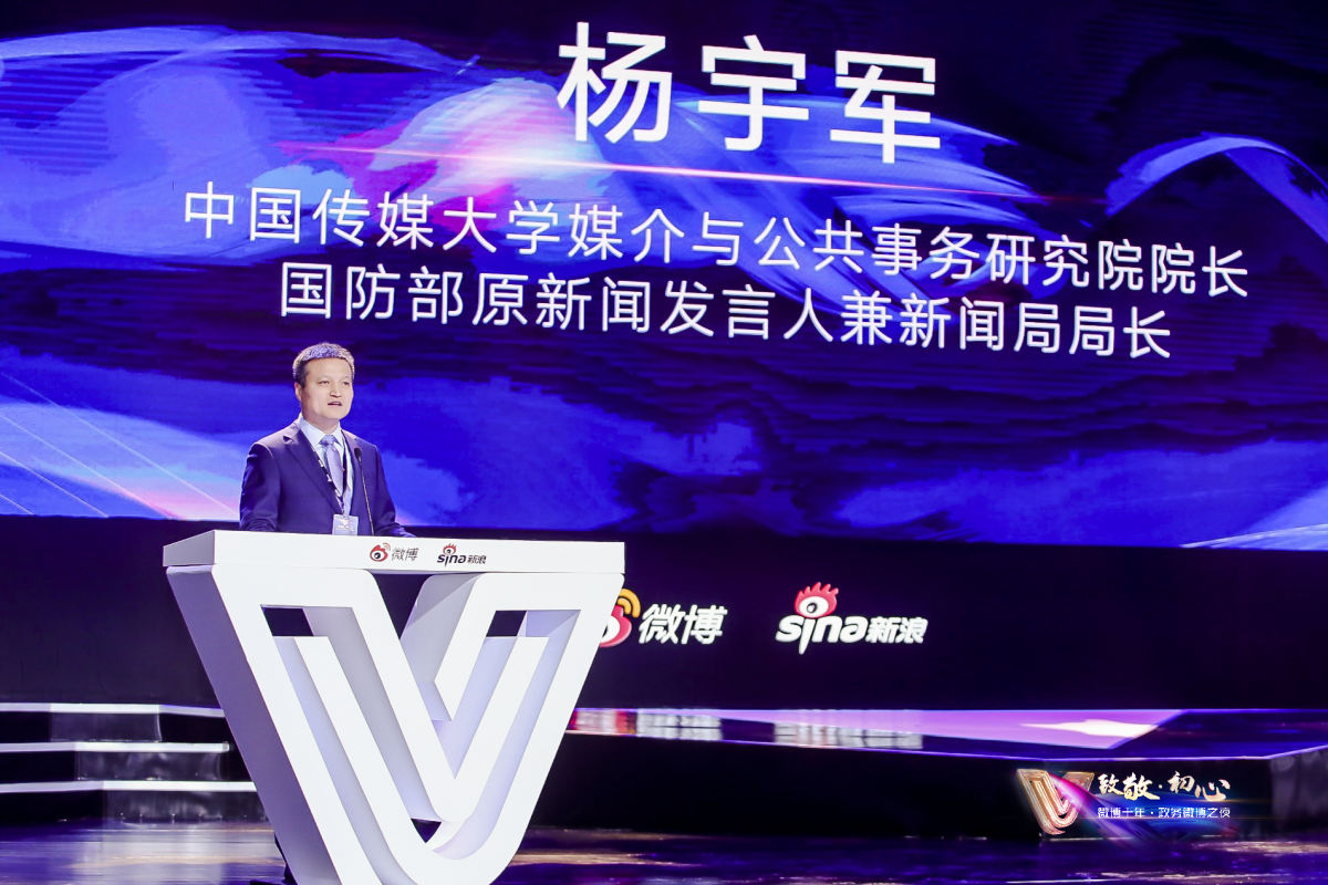 我校媒介与公共事务研究院院长杨宇军代表研究院上台领奖。关于政务微博,杨宇军的“三头六臂小哪吒”论不仅引发现场嘉宾的热烈反响,在新媒体平台也收获了很高点击量。
