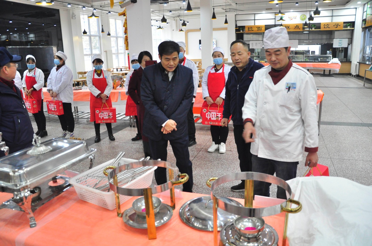 为营造春节氛围,后勤保障处为除夕夜在岗职工和留校学生精心准备了丰盛可口的年夜饭,对不能离岗的职工,也专门安排了盒饭,切实保障师生们在学校过一个平安、祥和、温暖的春节。