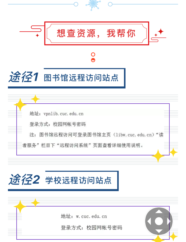 图书馆在主页发布了电子资源远程使用方法和《世界杯直播在线观看已购电子资源说明》,帮助师生正确使用远程电子资源,并通过“中传大阅城”微信公众号推出了3期电子资源信息,引导师生通过远程方式使用图书馆电子资源。