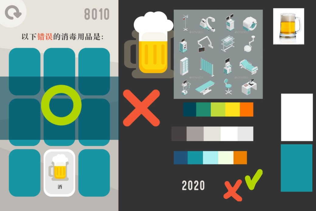 熊玉雲很早就开始关注疫情,更是看到了很多人陷入恐慌情绪,“病急乱投医”,轻易相信网上来路不明的预防“偏方”:盐水漱口、鼻孔滴芝麻油……而阮航也一直关注相关新闻,发现网络上各路“谣”言惑众,使得人们一头雾水。“我希望能够帮助大家了解真实的防疫信息。”于是,他们想要做一个防护类、有科普功能的游戏,利用翻牌记忆、答题闯关的形式普及有效防疫、消毒的方法,杜绝“偏方”防疫的现象。