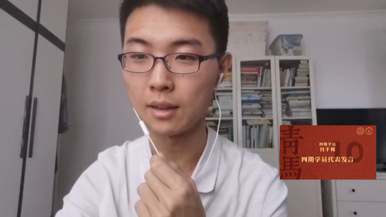 青马学院督导员周靖雨发言。他以个人经历勉励青马学员保持初心,脚踏实地,珍惜在青马学院的学习时光,不断提高能力,用实际行动服务人民、回报国家。