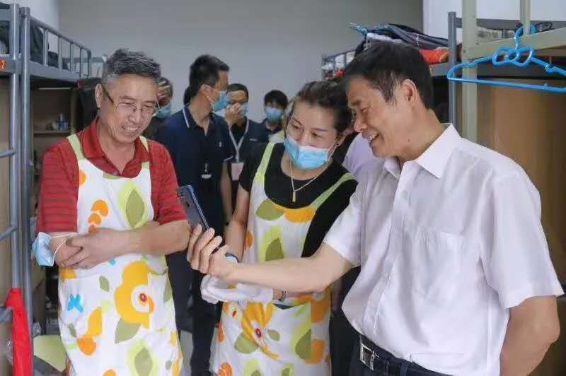 7月13日上午,校党委书记陈文申来到梆子井学生公寓,在人文学院毕业生宿舍遇到正为毕业生收拾行李的资深教授、人文学院院长张晶教授和校通识教育中心主任、人文学院文艺学专业硕士生导师李有兵副教授。陈文申书记现场系上人文学院“打包爱”专用围裙,帮助李有兵主任一起为他的硕士生收拾书籍,并与张晶教授的硕士生视频连线,送去问候与祝福。