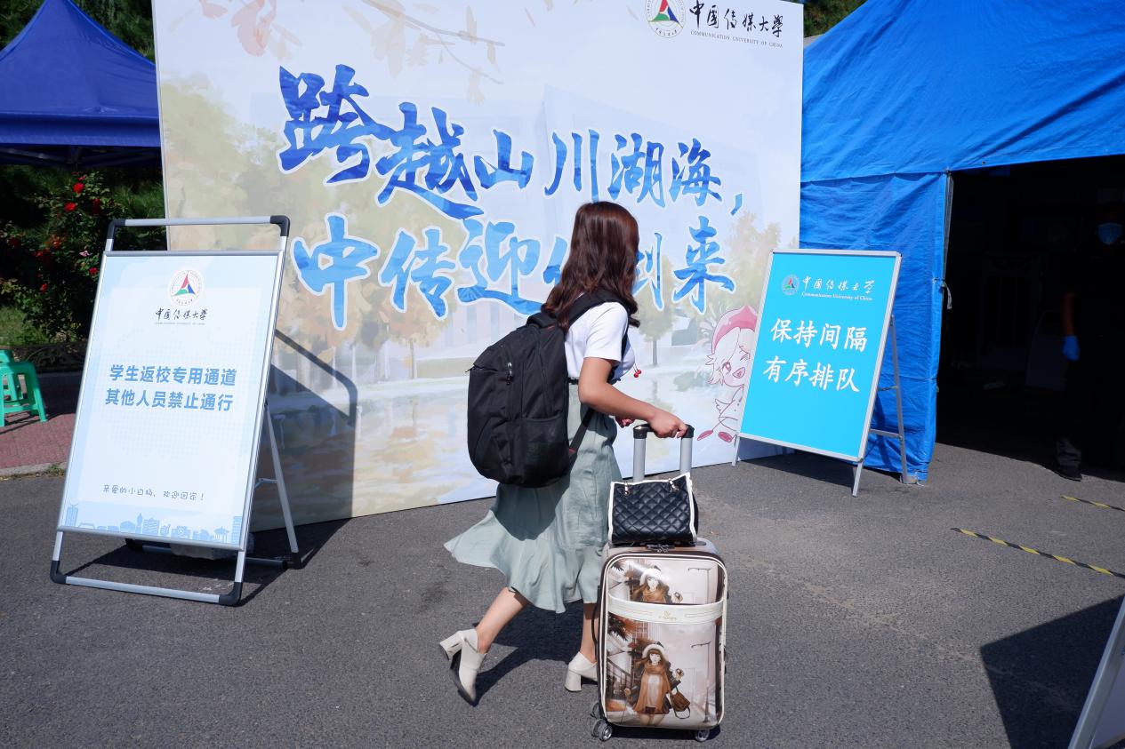 “跨越山川湖海,中传迎你到来”“亲爱的小白杨,欢迎回家”……在返校报到现场、主要道路、宿舍楼、餐厅等地摆放或悬挂着欢迎标语、条幅,气氛温馨。在窗明几净、焕然一新的餐厅,工作人员耐心地引导大家扫码登记,单向进出,使用流动水或免洗洗手液洗手、消毒,有序安心就餐。