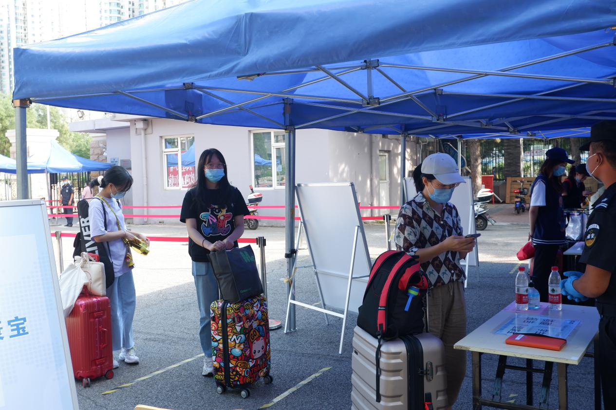 “同学,你好!请出示你的学生证、健康码和核酸检测证明。”在学校南大门、北大门和梆子井学生公寓大门,负责引导学生返校的相关工作人员早早到位,迎接同学们的到来。在工作人员的指引下,同学们依次通过返校报到专用通道,测量体温、身份核验、扫码登记……现场科学规范、井然有序。