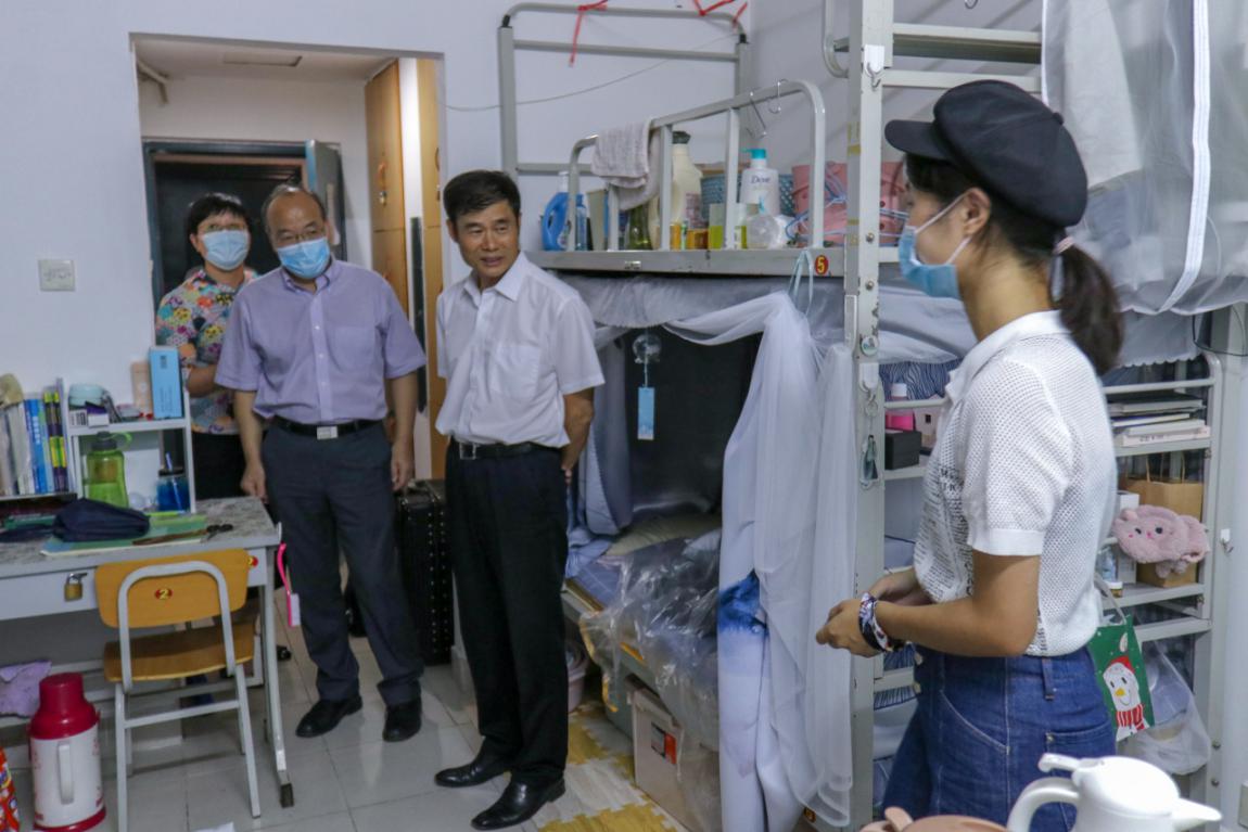 (记者 王雷亭 摄影 阎玺 余蓉茜)9月4日下午,党委书记陈文申、副书记姜绪范、副校长刘守训检查指导返校工作,看望慰问首批返校学生及工作人员。
