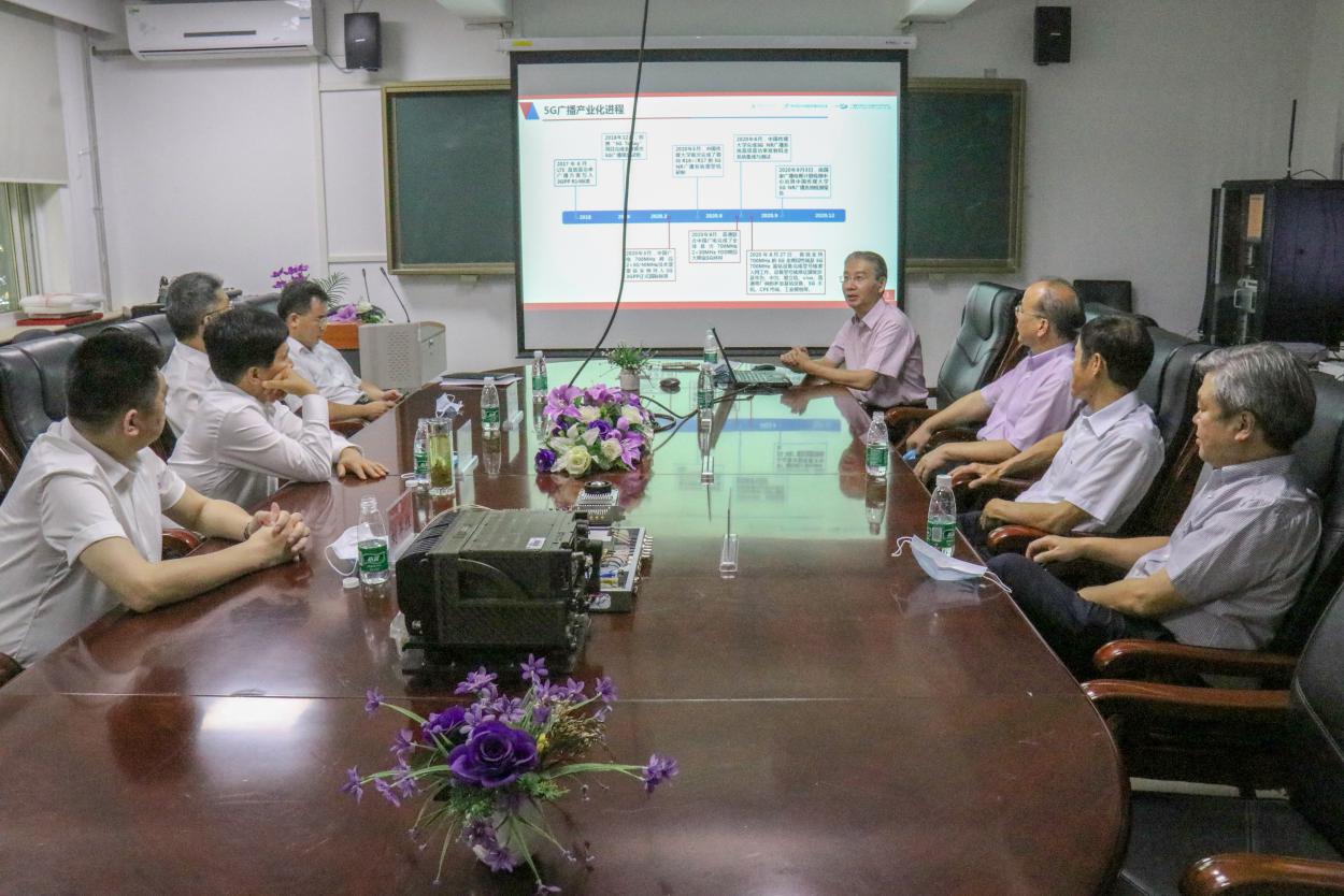 在媒体融合与传播国家重点实验室5G广播实验室,杜飞进部长一行察看了由世界杯直播在线观看自主研制的国内首套5G广播系统,听取了实验室负责人吕锐教授的汇报。杜飞进部长高度肯定5G广播实验室加强基于5G的融媒体理论和体制研究、关键设备开发,服务数字广播建设、应急和国防保底通信等方面工作,勉励大家在做好技术研究开发的同时,做好相关治理体系的研究。