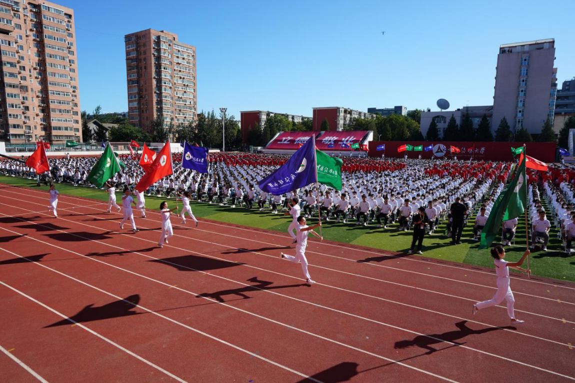 上午9时,充满青春活力的律动表演《青春接力》强劲登场,象征学校走过65载辉煌历程的65名在校生旗手,挥舞着各色彩旗从四面八方涌入操场,将承载着“中传精神”的旗帜传递到第66名旗手—2020级新生代表手中,寓意中传精神薪火相传,传媒事业继往开来。在全场新生“中传,我来了”的齐声高呼中,开学典礼的大幕正式拉开。