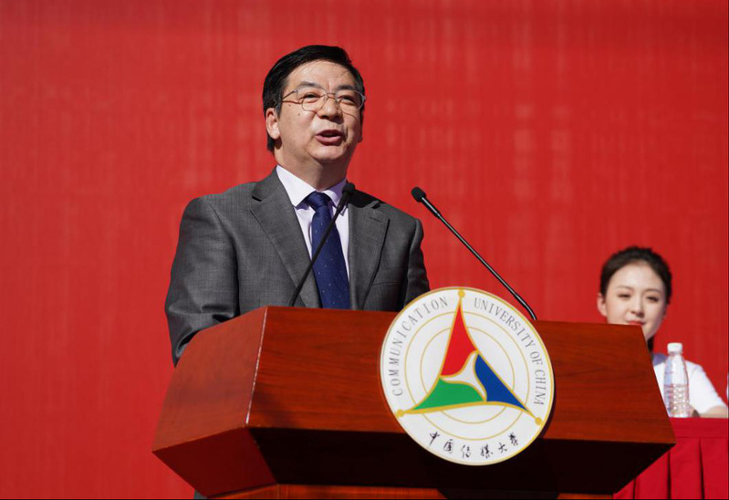 开学典礼上特别加入了校徽授予环节。陈文申书记、廖祥忠校长等领导为新生代表授予校徽,勉励新生同学共担中传人的历史使命,共创中传人的未来荣光,将“中传精神”内化于心,外化于行,共同开创新的美好未来。