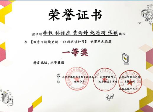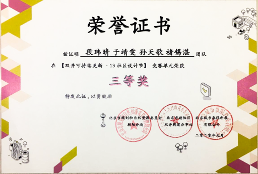(通讯员 武瑶)9月12日上午,由朝阳区双井街道与北京市规划和自然资源委员会朝阳分局联合主办的“双井可持续更新·13社区设计节”闭幕,设计节最终评选出特等奖以及一、二、三等奖,同时颁发最佳人气、最佳创意等专项奖。其中,戏剧影视学院光环境设计专业的两支参赛队伍获得了一等奖和三等奖的好成绩。获奖作品于今日美术馆3号馆进行了公共展览。