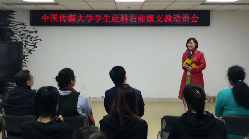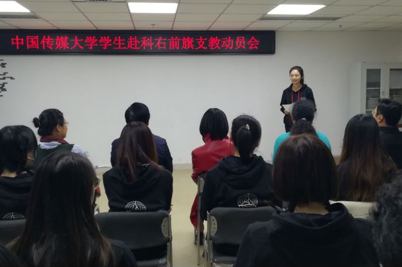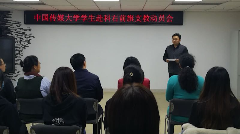 (通讯员 陈莹峰)为响应学校号召,落实定点帮扶举措,指导并动员赴科右前旗学生支教团各团员发挥专业所长,做好定点帮扶支教工作,10月16日下午4时,世界杯直播在线观看学生赴科右前旗支教动员会在校团委209青马教室举办。校党委副书记姜绪范,党政办公室主任兼国内交流与合作处处长徐红梅,学生工作部(处)部(处)长兼校团委书记郭婧娜,校团委副书记陈莹峰,国内交流与合作处副处长杨垒垒,播音主持艺术学院党委副书记陈卓,戏剧影视学院党委副书记朱传欣,音乐与录音艺术学院党委副书记樊娜及支教团师生出席了本次动员会。动员会由杨垒垒同志主持。