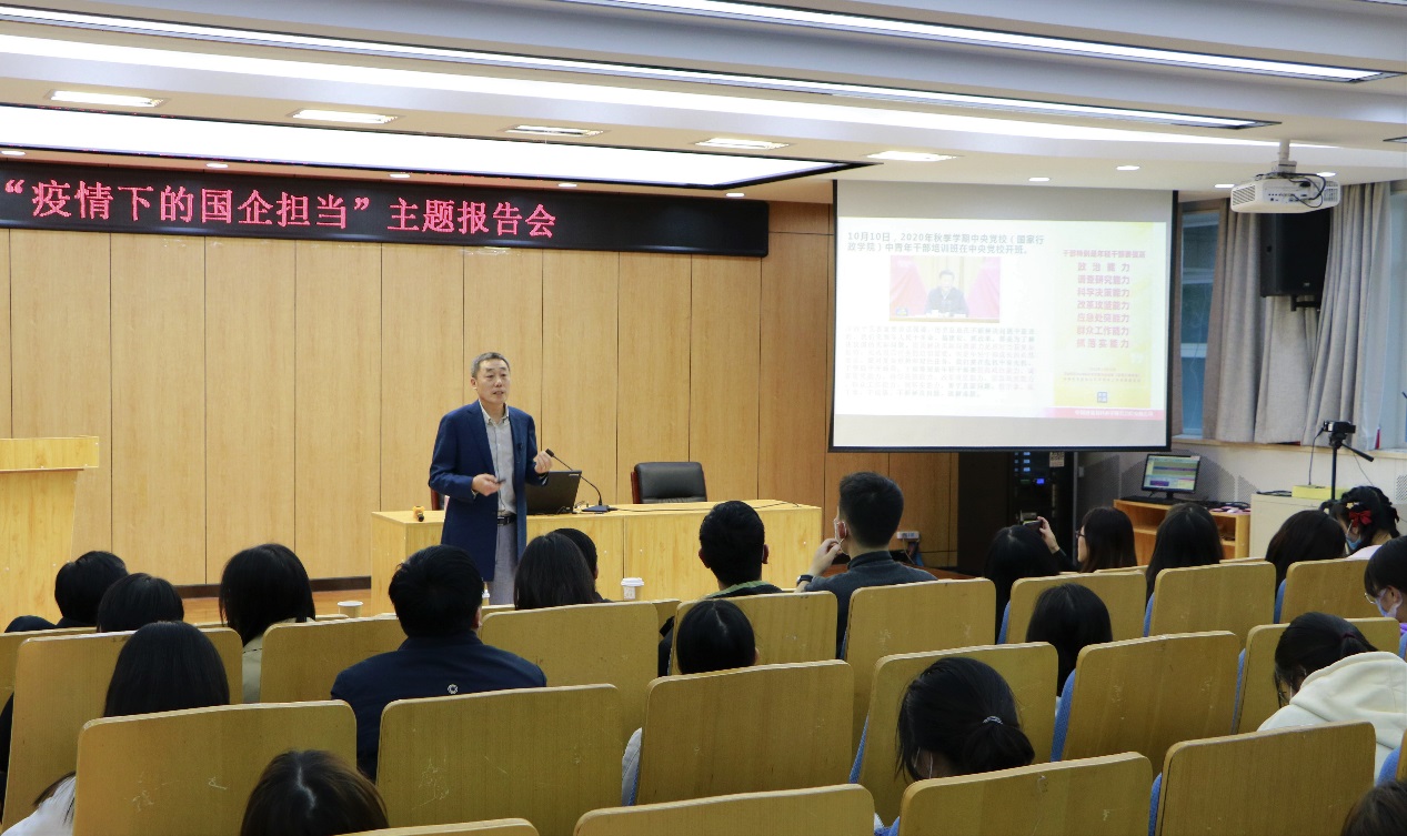 本次活动由学生工作部和经济与管理学院联合主办。报告会的内容引发了参会师生的热烈反响和讨论,大家围绕国企在复杂国际形势下的发展路径、国内复产复工背景下的抗疫担当等方面提出问题,并获得了王书记的详细解答,多次引发在场师生的热烈掌声。此次主题报告会系我校开展落实推进“使命在肩、奋斗有我”主题教育活动、引导广大师生学习弘扬伟大抗疫精神的重要平台。邀请国企校外辅导员为师生做主题报告,不仅让师生有机会近距离接触国企领导的风采,更让同学们对于国企在科技创新和抗疫报国方面有了新的认识,进一步提升了在校学生走近国企、投身国企的意愿。