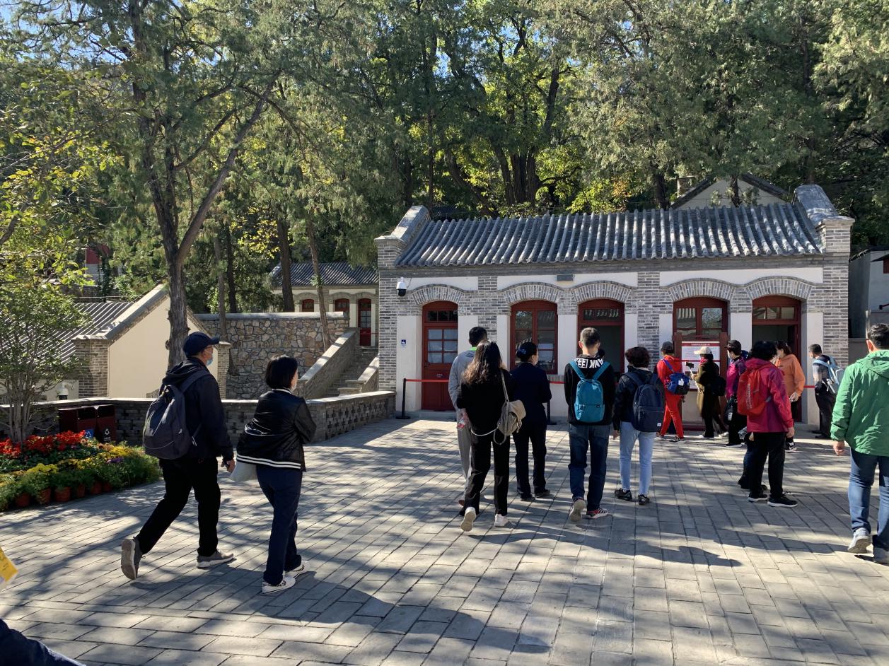 来到位于香山公园南麓半山腰的双清别墅和来青轩,教职工们重温毛泽东、周恩来、刘少奇、朱德、任弼时等中央领导人从西柏坡到北平香山的“进京赶考”之路和取得的丰功伟绩。别墅内简朴陈列的起居用品,再现了老一辈革命家的朴素生活。新入职教职工在此接受革命精神的洗礼,感受老一辈革命家简朴的生活作风和运筹帷幄、决胜千里的大智慧。